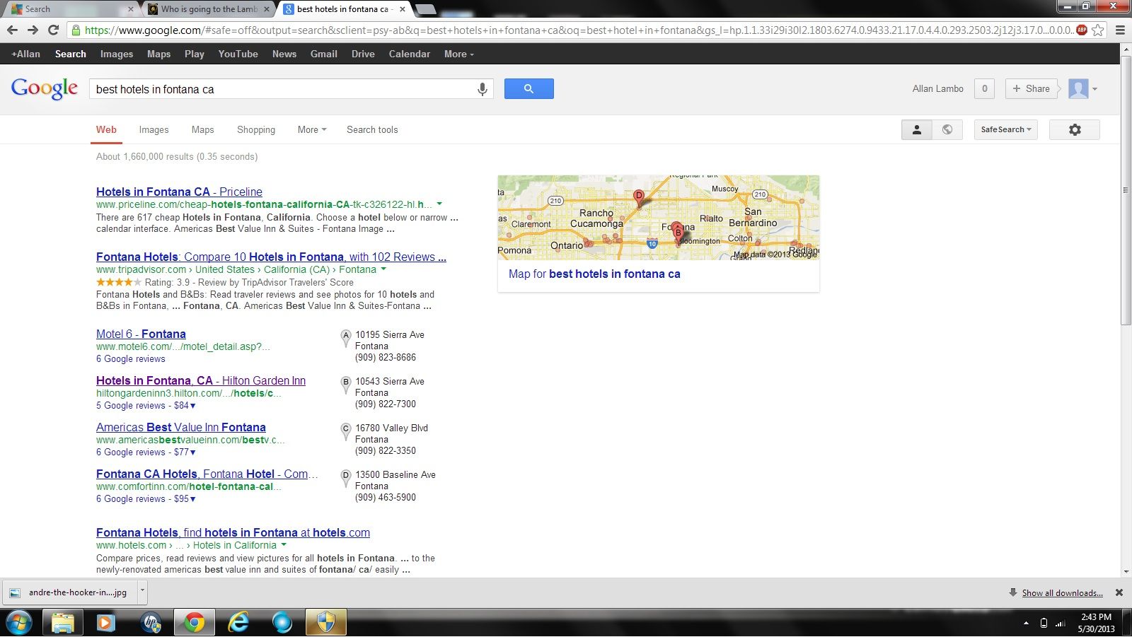 Allan-Herbie Report post Posted May 30, 2013 Deuce and Flyin Flap got this one on lockdown.... Whats the best hotel in Fontana? Quote Share this post Link to post Share on other sites More sharing options...