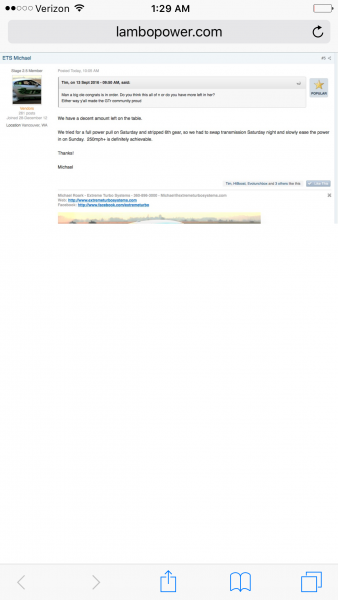 VentadorGER Report post Posted September 12, 2016 I figured the registration number was a typo. There has been many 2000 hp Lambos and none have run anything near 247. Those are just really meant to be a basic orientation from all the big power builds attending. Its the same for TI. Nobody with 2000HP and above actually knows all the time what their exact numbers are they are putting down on the ground at the events. The boost levels are adjusted according to the available traction so a cars HP may vary a lot from warm up runs to the final all out racing passes. Quote Share this post Link to post Share on other sites More sharing options...